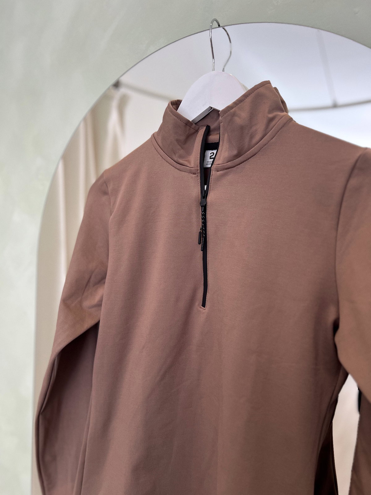Su diseño de cuello alto con cierre frontal aporta un plus termico y versatilidad, permitiendole regular la ventilacion segun la intensidad de tu entrenamiento. Las mangas largas con puños ajustados y su silueta levemente entallada estilizan sin perder libertad de movimiento.
