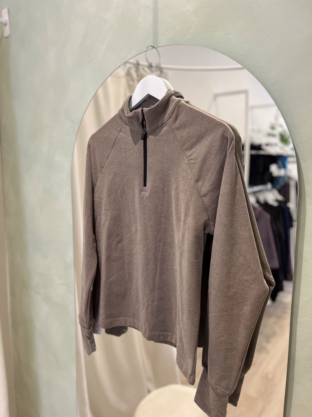 Su diseño cuenta con medio cierre frontal que permite regular la ventilación y un cuello alto que aporta mayor abrigo. Incorpora dedales en las mangas, un detalle funcional que brinda mayor cobertura y confort durante el movimiento.
