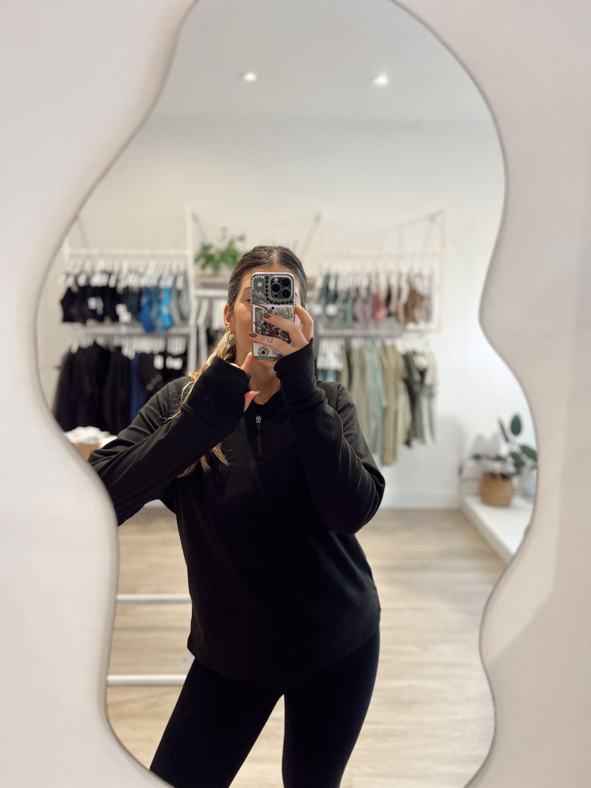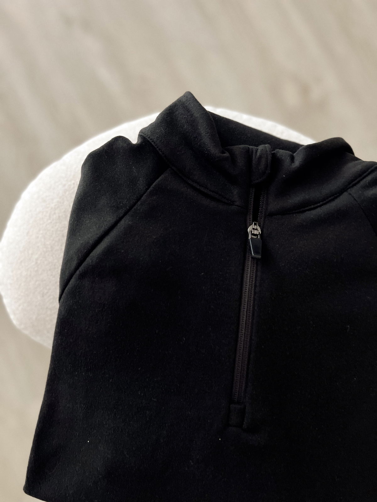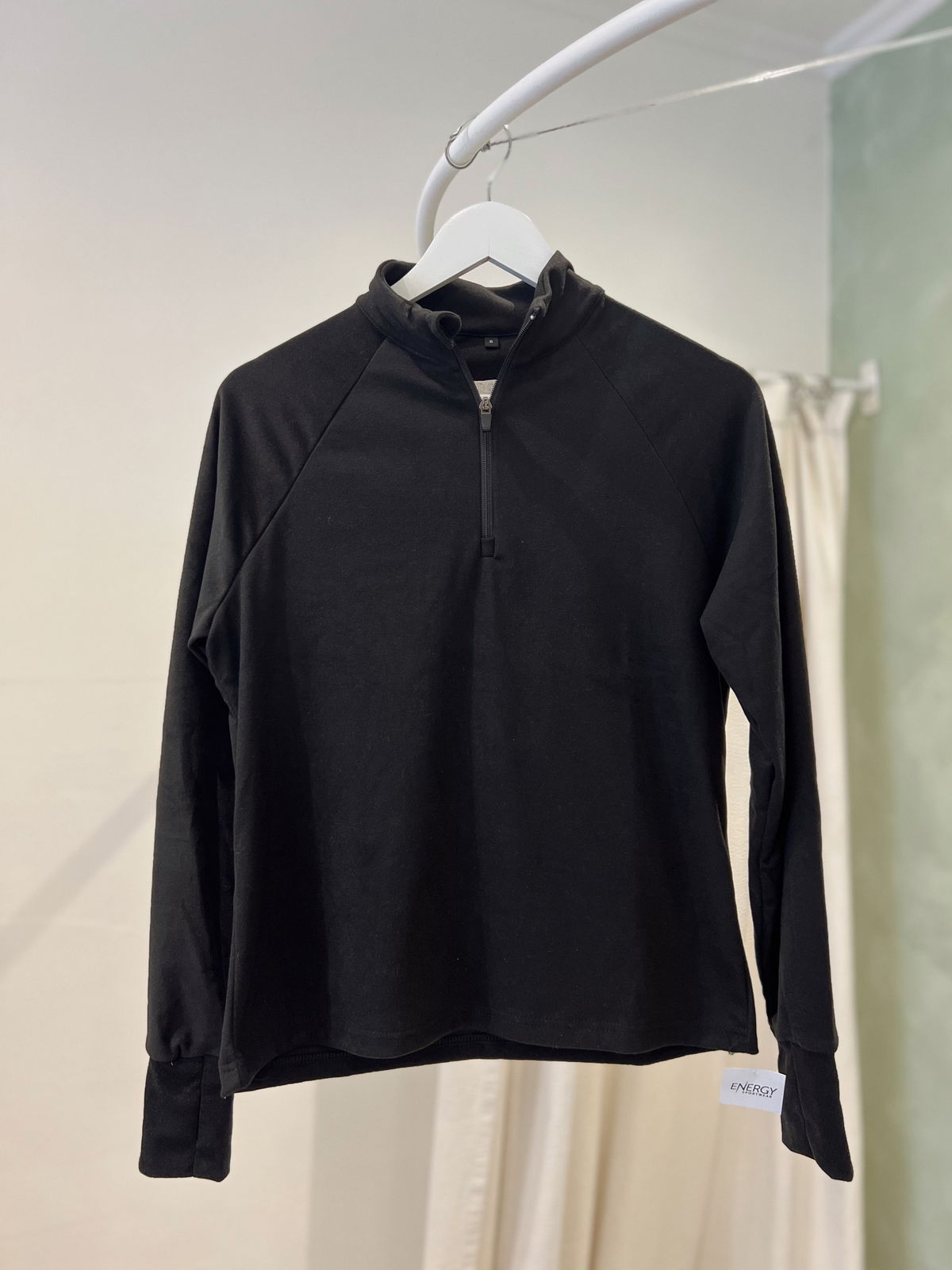 Su diseño cuenta con medio cierre frontal que permite regular la ventilación y un cuello alto que aporta mayor abrigo. Incorpora dedales en las mangas, un detalle funcional que brinda mayor cobertura y confort durante el movimiento.